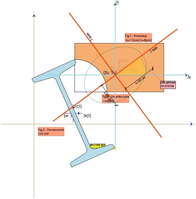 Teraz wykonamy obliczenia dla przykładu nr 2 (cały przykład możesz zobaczyć w artykule Momenty bezwładności - przykład nr 2).