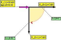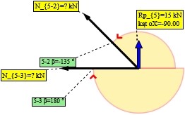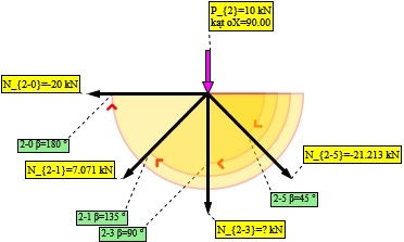 Obliczenia rozpoczynamy od węzła, dla którego liczba niewiadomych sił w prętach jest najmniejsza i wynosi maksymalnie 2.