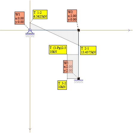- ΣRy - suma reakcji podporowych rzutowana na oś Y w węźle (jeżeli istnieje)