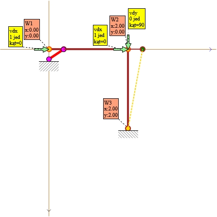 Przyjęte przemieszczenie i kąt podstawiam do łańcuchów kinematycznych jako wiadome.