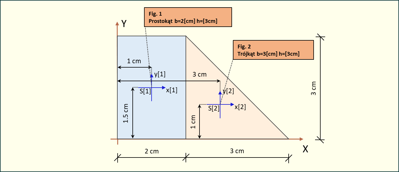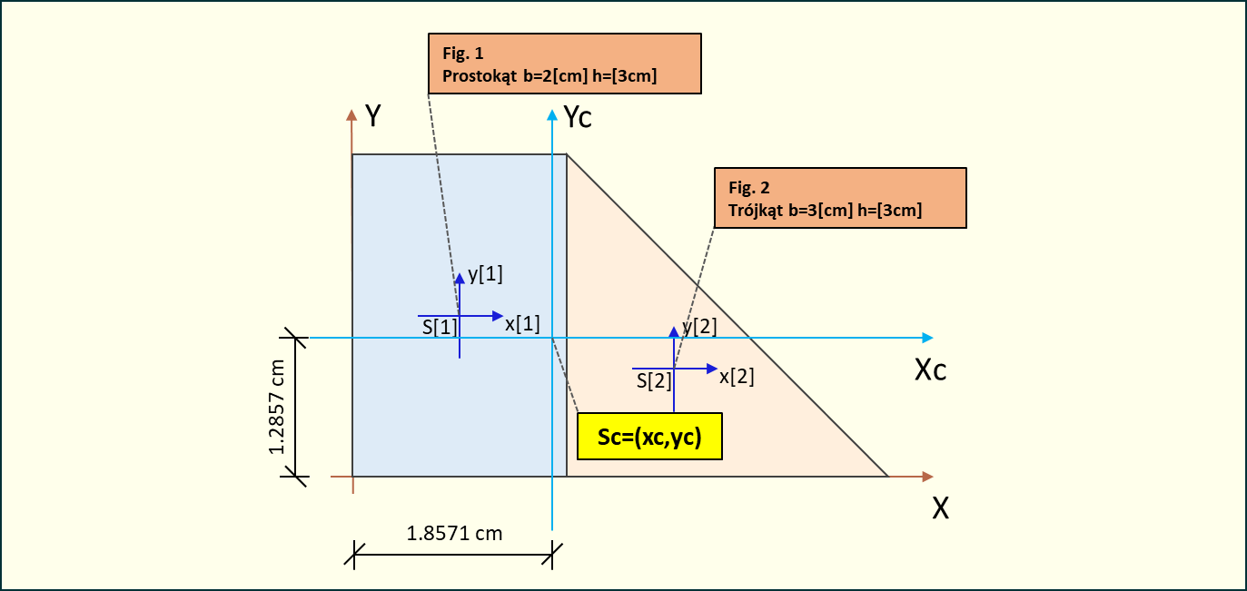 Rys. 5. Odległości od środka ciężkości figury do środka ciężkości układu
