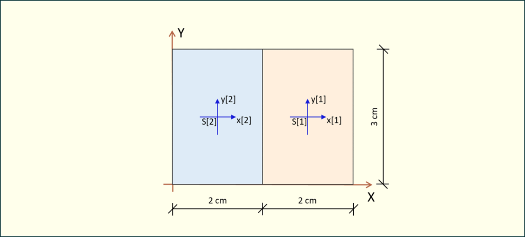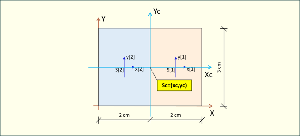 - Obliczenie momentów statycznych poszczególnych elementów względem przyjętych osi