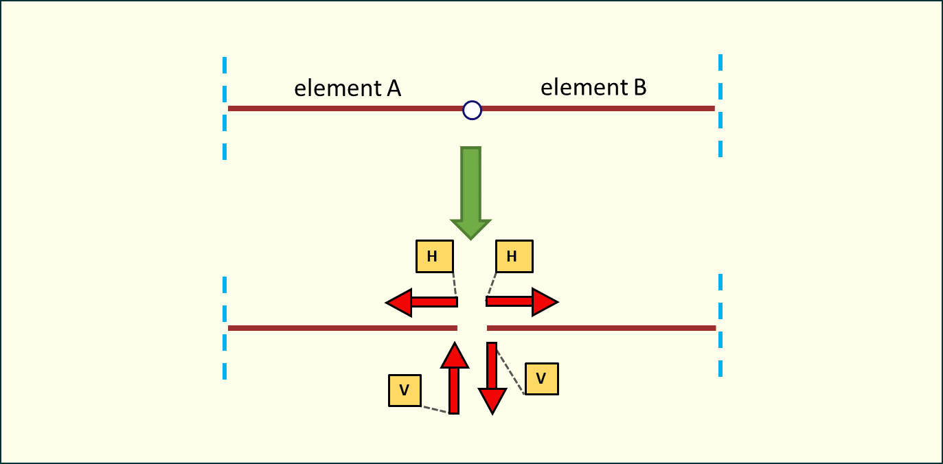 Ponieważ w przegubie możliwy jest obrót, suma momentów względem punktu przegubowego jest zawsze równa zero: