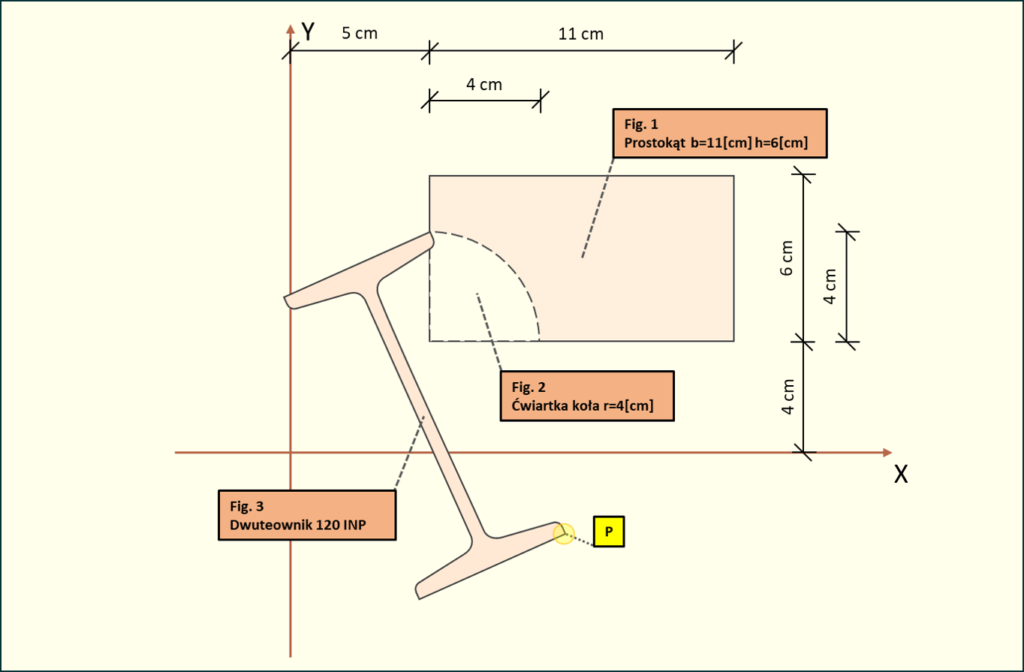 Rys. 1. Układ figur z punktem przyłożenia siły P